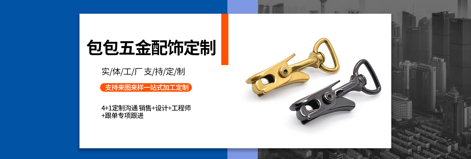 世旺五金是一家專(zhuān)業(yè)從事手袋箱包五金配飾定制生產(chǎn)的工廠(chǎng),始創(chuàng)于2004年,至今19年五金配飾定制經(jīng)驗(yàn),是集研發(fā)、設(shè)計(jì)、制造、電鍍、銷(xiāo)售于一身的企業(yè),擁有14000多平的生產(chǎn)基地,全自動(dòng)化生產(chǎn)能力,自有模具制造車(chē)間和電鍍工廠(chǎng),日產(chǎn)能20多萬(wàn)件,還有強(qiáng)大的技術(shù)團(tuán)隊(duì)和高效的銷(xiāo)售網(wǎng)絡(luò)。我們以市場(chǎng)需求為導(dǎo)向,不斷探索和創(chuàng)新,在產(chǎn)品品質(zhì)和性能上達(dá)到領(lǐng)先水平。 我們的產(chǎn)品包括各類(lèi)五金制品,如高端皮具手袋、消費(fèi)電子、禮品/工藝品包裝、寵物穿戴、汽車(chē)裝飾等領(lǐng)域五金配飾,應(yīng)用廣泛,覆蓋行業(yè)多。 以客戶(hù)需求為中心,為客戶(hù)提供全方位的一站式服務(wù),包括售前咨詢(xún),生產(chǎn)跟進(jìn),售后服務(wù)等等。提供保姆式顧問(wèn)式服務(wù),與品牌商、手袋廠(chǎng)等共同打造好產(chǎn)品,好IP。